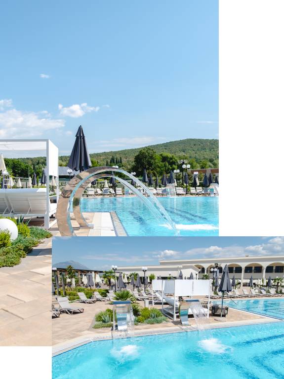 Uživajte u omiljenom koktelu na šanku u bazenu, ili se prepustite gastronomskim čarolijama našeg restorana.